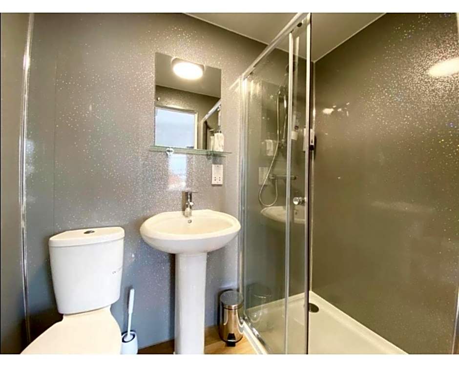 The double room offers a carpeted floor and heating, as well as a private bathroom featuring a walk-in shower. The double room provides a flat-screen TV with streaming services, soundproof walls, a tea and coffee maker, a wardrobe as well as city views. The unit offers 1 bed.